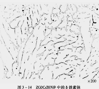 鑄造的鉻-鎳奧氏體不銹鋼,鑄態(tài)化學(xué)成份不均勻,鐵素體形成元素偏聚區(qū)。