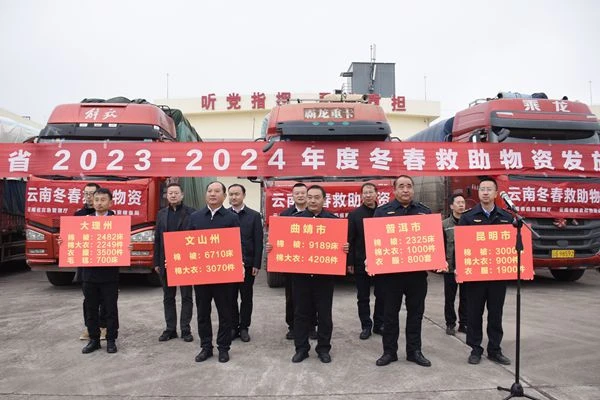 12月22日,省應(yīng)急管理廳、國家糧食和物資儲備局云南局、省糧食和物資儲備局聯(lián)合舉行2023—2024年度省級冬春救助物資發(fā)放儀式,向全省各州(市)發(fā)放棉衣、棉被、毛毯等冬春救助物資105792套(件)。