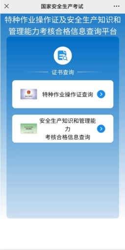 步驟 2:根據(jù)需要選擇“特種作業(yè)操作證查詢”或“安全生產(chǎn)知識和管理能力考核合格信息查詢”,如實填入證件信息和姓名,就可以看到證書信息和復(fù)審時間。