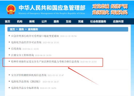 步驟 1:點(diǎn)擊“特種作業(yè)操作證及安全生產(chǎn)知識和管理能力考核合格信息查詢”。