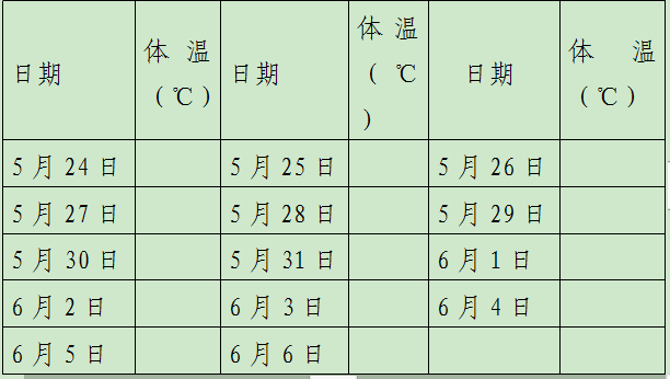 備注:1.考生應(yīng)按上表每日測量體溫、進行健康監(jiān)測,如出現(xiàn)發(fā)熱、干咳、流涕等可疑癥狀應(yīng)及時就醫(yī)。2.入場攜帶本承諾書、核酸檢測證明連同彩打的云南健康碼、通信大數(shù)據(jù)行程卡交考點、考場查驗。3.考生對所填內(nèi)容真實性負責(zé)。